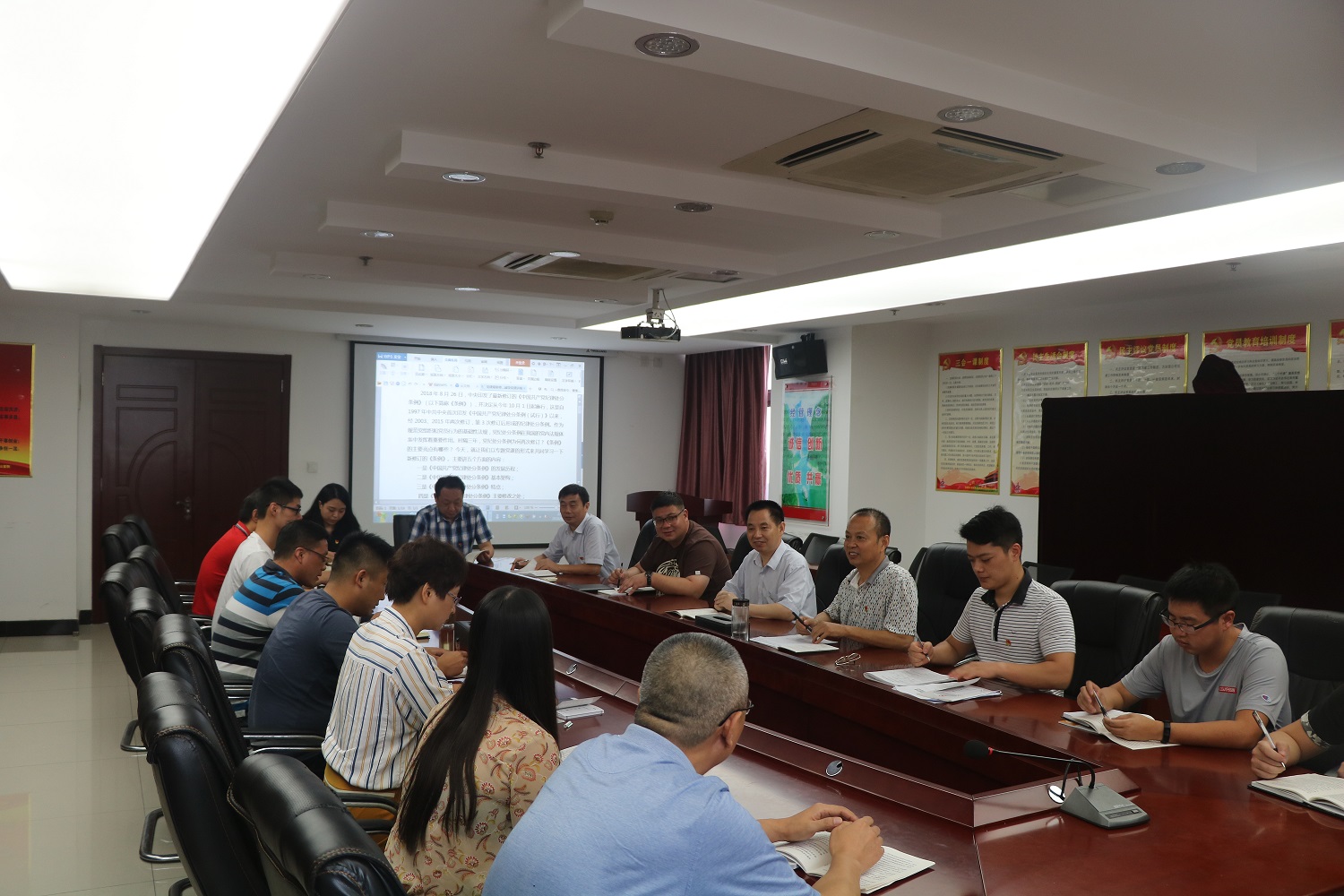 胡六中指出,新修訂的《中國共產黨紀律處分條例》再次宣示了反腐敗斗爭不會變風轉向的頑強意志和堅定決心,營造出不斷加強紀律建設的濃厚氛圍,是對十九大報告中“把紀律建設納入新的黨的建設總體布局”的具體實踐,體現了下大氣力建制度、立規矩、抓落實、重執行的鮮明導向,是對全黨一次生動的紀律教育。他要求廣大黨員干部要重點做好以下三點工作:一要提高政治站位,強化理論武裝。要持續深入抓好新《條例》和集團公司《黨員領導干部應知應會知識手冊》等理論知識的學習宣貫,創新方式方法,注重學習實效,使廣大黨員牢固樹立黨章、黨規黨紀意識,并將學習成果運用到實際工作中去。二要嚴明政治紀律,狠抓作風建設。時刻將新修訂的《條例》等黨內規章制度作為規范自身言行、踐行廉潔自律的行動指南,以集團公司“大宣講大督查”和專項審計反饋問題整改為契機,加大追責問責工作力度,推動全面從嚴治黨向基層延伸,努力營造良好的政治生態。三要愛崗敬業,以身作則。要扎實做好本部門本單位重點工作,充分發揮各級廣大黨員的先鋒模范作用,引導全體員工見賢思齊、干事創業,為完成公司全年各項目標任務盡職盡責。