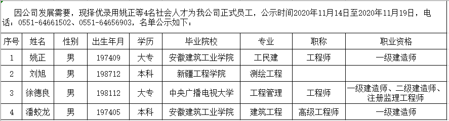 2020年擬錄用社會人才公示