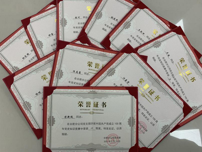 4月27至28日,合肥分公司在線上組織進行了慶祝中國共產黨成立100周年黨史知識競賽活動。黨史知識競賽吸引了132人報名參與,根據答題情況共有10名同志獲獎。黨史知識競賽活動旨在以賽促學,以學促用,推動黨史學習教育往深里走、往實里走,在扎實理論學習的同時也讓黨史學習教育入腦入心。
