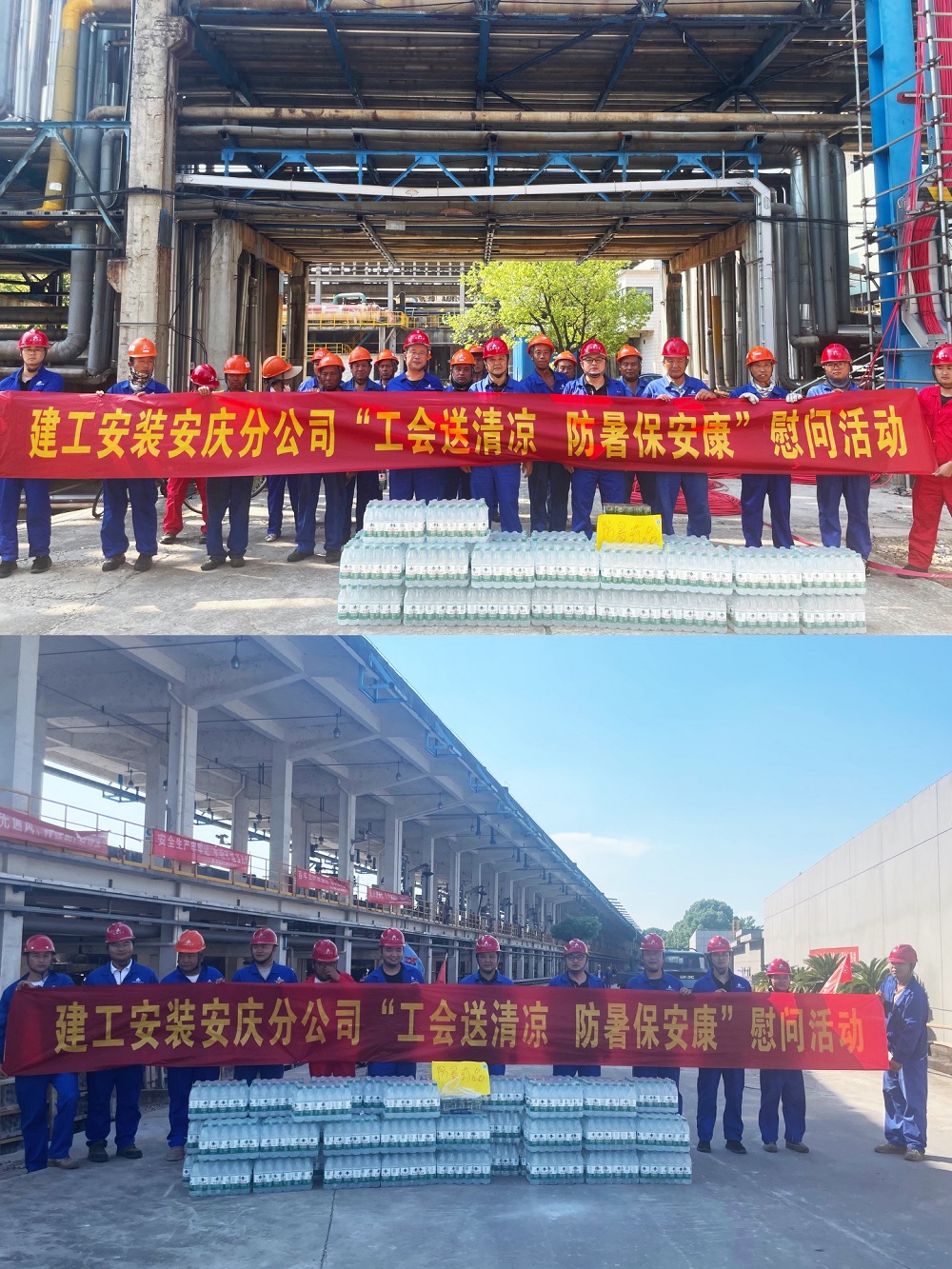當前,安慶已進入夏季高溫和雨汛期,為切實維護廣大員工的勞動安全健康權益,7月23日下午,安慶分公司工會深入項目一線開展“工會送清涼、防暑保安康”慰問活動。