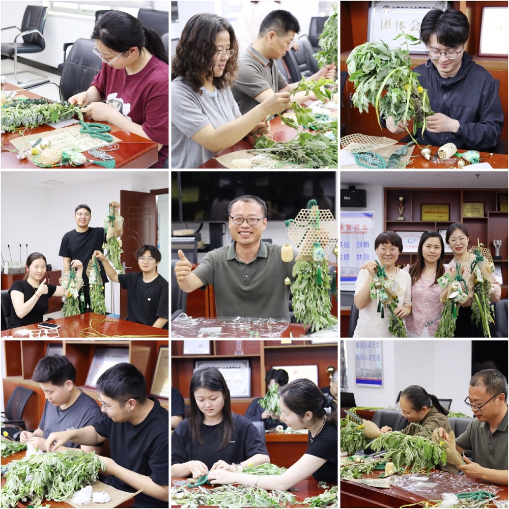 活動現場,大家首先學習了端午節的由來、習俗,以及艾草在端午文化中的特殊寓意,在手工包裝艾葉花束環節,大家熱情投入,小心翼翼地整理清香撲鼻的艾葉,用五彩絲線仔細纏繞,將一片片艾葉變成了精致的艾葉花束。有人別出心裁地將艾葉花束編織成愛心、花朵的形狀,有人則在絲線上系上小巧的鈴鐺,隨著動作發出清脆聲響。現場歡聲笑語不斷,大家互相展示作品,分享制作心得,平日里緊張忙碌的工作在此刻被輕松愉悅氛圍取代。